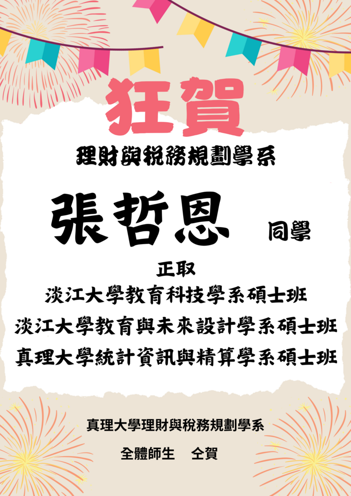 ☆★賀★☆ 張哲恩同學 正取114學年度淡江大學教育科技學系碩士班