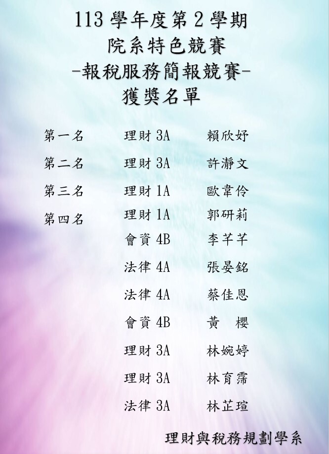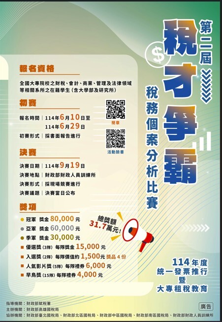 114年度統一發票推行暨大專租稅教育「第二屆稅才爭霸」比賽